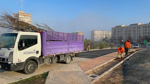 Pablo García ha explicado que en estos momentos se está completando este entorno con la plantación de una veintena de almeces y arbustos en la entrada del recinto, en la que se instalarán también farolas de luminarias led con paneles solares.