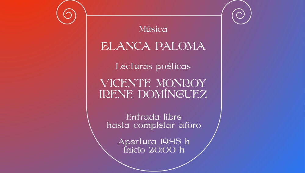 A continuación, se podrá disfrutar del concierto de Blanca Paloma, una de las voces con más personalidad y con más futuro de la música española, finalista del Benidorm Fest camino a Eurovisión, en el que nos deslumbró con su tema "Secreto de agua" y que presentará de forma exclusiva y en formato dúo los temas que formarán parte de su primer disco.