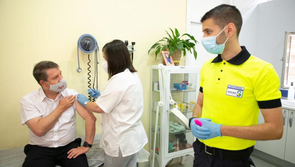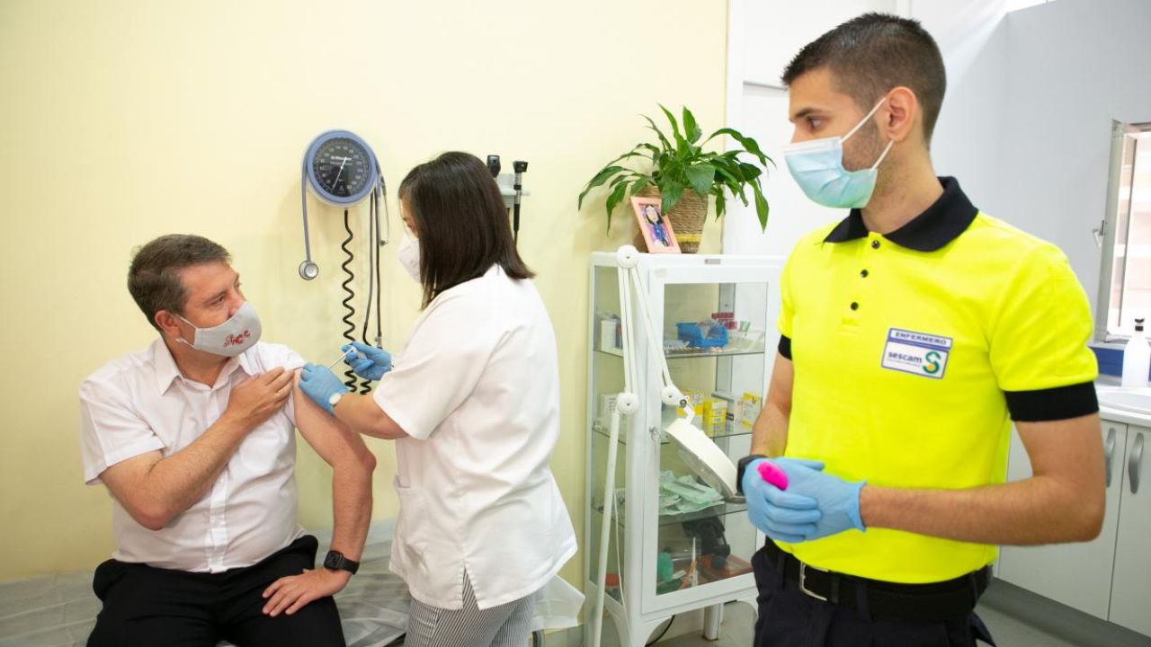 El presidente de Castilla-La Mancha, Emiliano García-Page, ha recibido este jueves la vacuna de Janssen. Además, ha avanzado la Región adelantará dos semanas los plazos previstos, de manera que este mismo viernes, el tramo de edad entre 40 y 49 años, empezará a recibir dosis.