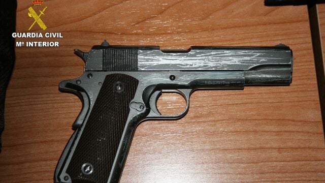 Esa misma tarde, pocas horas después de suceder los hechos, se realizó un registro de su vivienda, encontrando un arma corta simulada, un táser y varias armas blancas.