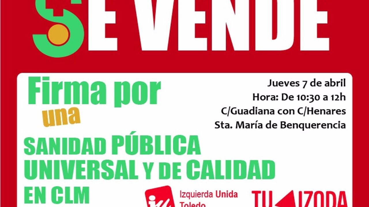 Izquierda Unida en Castilla-La Mancha defiende "un sistema sanitario público universal, equitativo, de calidad y sostenible" porque entienden la salud "como derecho social fundamental que va más allá de la ausencia de enfermedad".