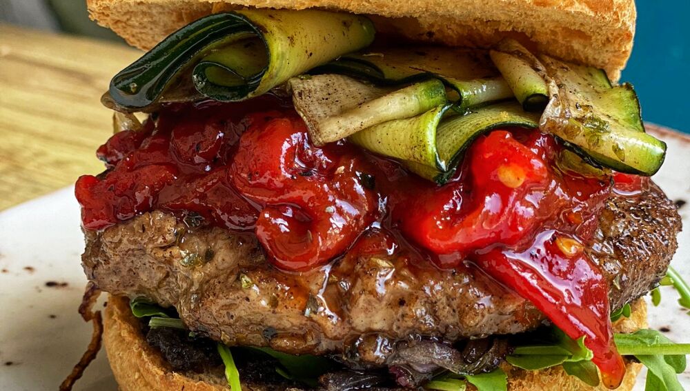Ahora, demostrando su implicación con nuestro río y la sociedad toledana, han elaborado una nueva hamburguesa con ingredientes típicos de las huertas de ribera del Tajo: aceitunas, calabacín, cebolla, pimiento, orégano, berenjenas…