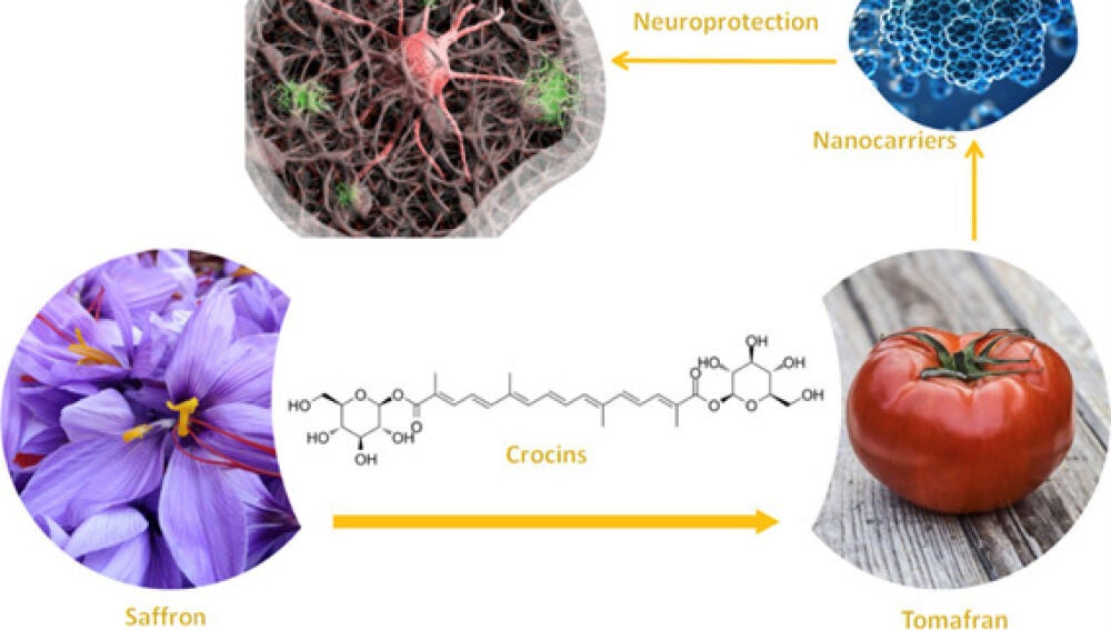 El grupo Bioforce, en colaboración con el grupo de Química Médica y Biológica traslacional del Centro de Investigaciones Biológicas (CIB, CSIC, Madrid) publicaron un estudio preliminar sobre las propiedades neuroprotectoras de exosomas y nanopartículas de quitosano de ‘Tomafrán’, un tomate recientemente desarrollado por Bioforce, en colaboración con el grupo de Genómica de Plantas y Biotecnología del IBMCP-CSIC enriquecido en crocinas.
