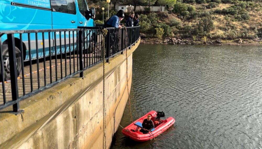 Buzos inspeccionan la toma de agua del embalse de Fresneda para mejorar la captación de agua de Valdepeñas, una actuación realizada por Aqualia, empresa concesionaria de la gestión integral del agua en esta localidad, en colaboración con el Ayuntamiento valdepeñero, informa el consistorio en nota de prensa..