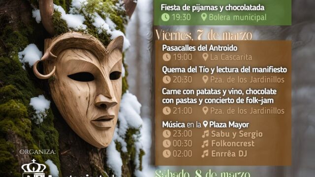 Viernes 7 de marzo - El Antroido: La celebración del tradicional Antroido traerá consigo el espíritu más auténtico del carnaval, con sus zamarrones, rituales ancestrales y la esencia de la fiesta popular.