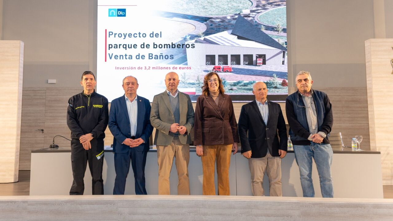 La presidenta de la Diputación de Palencia, Ángeles Armisén, ha presentado esta mañana el proyecto del nuevo parque de bomberos que se construirá en Venta de Baños, una infraestructura estratégica que permitirá culminar el despliegue del modelo provincial de prevención y extinción de incendios profesionalizado y que supondrá una inversión de 3,2 millones de euros financiado íntegramente por la Institución provincial.