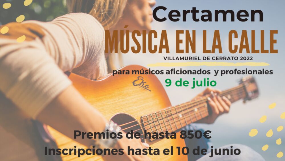 El Ayuntamiento de Villamuriel de Cerrato, con la intención de dar visibilidad al colectivo de los músicos tanto profesionales como aficionados, vuelve a poner en marcha el “Certamen de Música en la Calle”. Este año tendrá lugar su segunda edición, gracias al éxito de convocatoria, público y calidad de los artistas de la pasada edición, celebrada en julio de 2021. El Certamen pretende llenar las calles del municipio de música de la mejor calidad venida de todo el panorama nacional y dar un espacio a todos los artistas.