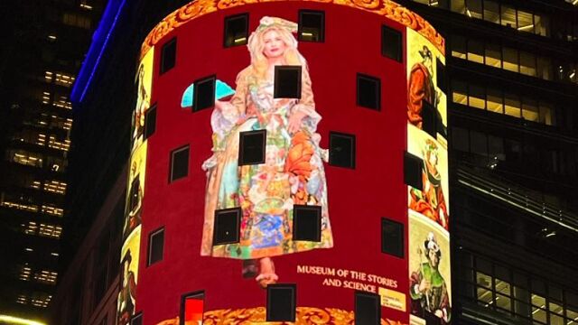 Este logro ha sido posible gracias a la artista Rosana Largo, responsable del Museo de los Cuentos y la Ciencia de Paredes de Nava. El retablo lucía en las pantallas junto a la imagen de la artista quien viste un traje pintado al óleo.