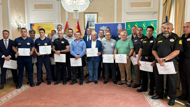 Ángel D. Miguel ha agradecido a los agentes de seguridad privada su esfuerzo diario, así como la buena sintonía que tienen con las FFCC de Seguridad del Estado, “algo imprescindible para cumplir con el objetivo común: la seguridad de todos y todas”. En el acto se han entregado 21 menciones honoríficas a otros tantos trabajadores de la seguridad privada en la provincia de Palencia, para los que el subdelegado ha tenido palabras de agradecimiento y felicitación, así como para las empresas en las que desarrollan su trabajo, por su “disposición, profesionalidad y buen hacer”. Este acto se realiza en cumplimiento del RD 2364/1994, de 9 de diciembre, por el que se aprueba el Reglamento de Seguridad Privada, y que dispone que “El personal de seguridad privada que sobresalga en el cumplimiento de sus funciones y especialmente en la colaboración con las Fuerzas y Cuerpos de Seguridad, podrá ser distinguido con menciones honoríficas cuyas características y procedimiento de concesión serán regulados por el Ministerio del Interior”.