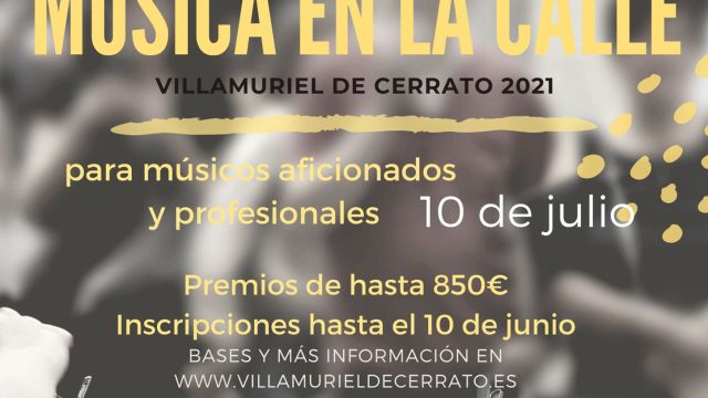 En este apoyo decidido por una de las bellas artes, la música, el Ayuntamiento de Villamuriel otorgará más de 800€ en premios. La inscripción se podrá realizar hasta el día 10 de junio de 2021. Asunto: “MUSICA EN LA CALLE 2021” en información@villamurieldecerrato.es