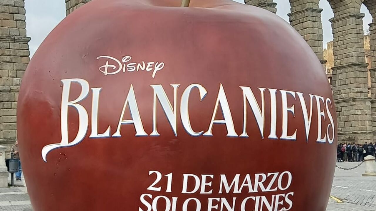 La nueva película, basada en el clásico infantil, llegará a los cines de nuestro país el próximo día 21 de marzo, según se publicita en una gran manzana situada en la Plaza de Artillería. Además, en el Alcázar se grabó anoche una canción, una nueva versión de los clásicos de Disney con la protagonista de la película, Rachel Zegler, una canción que se ha hecho viral en las redes sociales para promocionar no sólo la película sino también la ciudad de Segovia y el castillo segoviano que inspiró la historia original de Blancanieves.