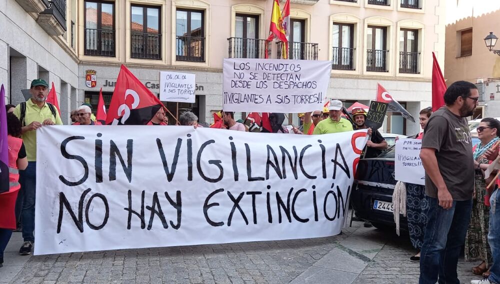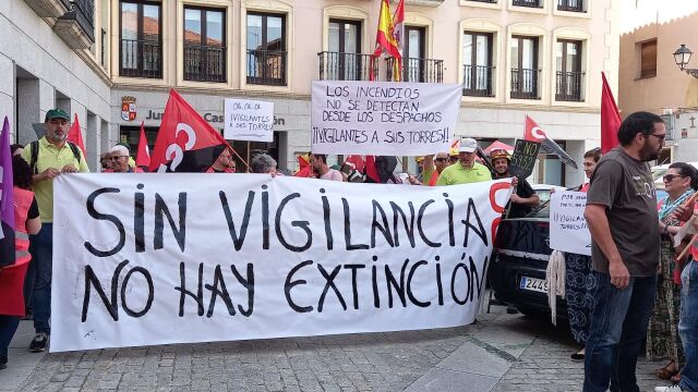 El cierre de 13 torretas de vigilancia antiincendios en la provincia de Segovia ha llevado al sindicato CGT a concentrarse esta mañana a las puertas de la Delegación Territorial de la Junta. Torres de vigilancia que no pueden ponerse en funcionamiento porque la Inspección de Trabajo ha certificado que no cumplen la normativa. La Junta ha tomado la decisión de sustituirlas por 7 puntos de vigilancia con casetas en promontorios del terreno para tener cobertura visual de la provincial.