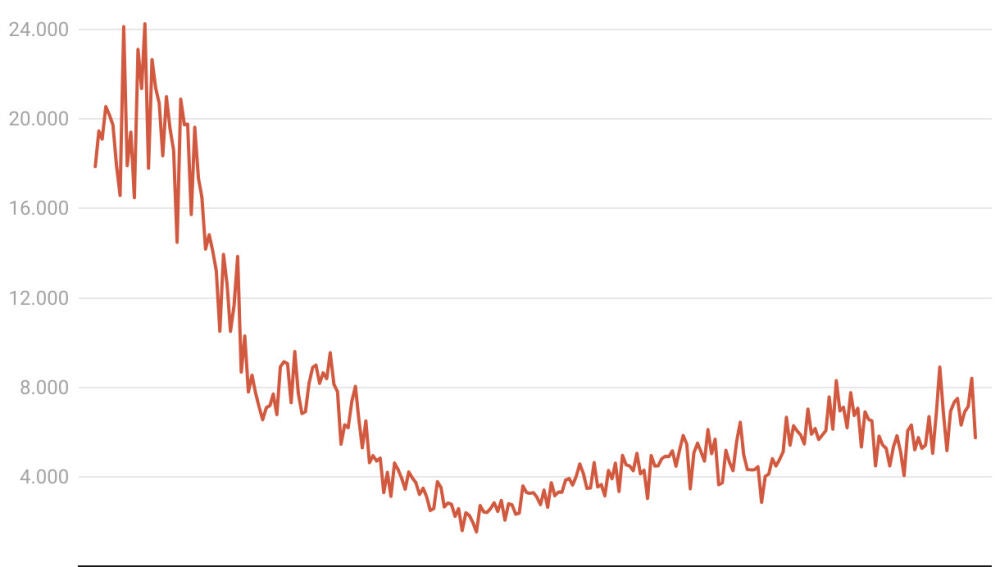De fet, les dades de compravenda d’habitatges mostren una lleugera davallada. A l’agost es van registrar 7.611 transaccions, un 0,6% menys que fa un any, trencant una sèrie de 13 mesos consecutius de pujades interanuals.