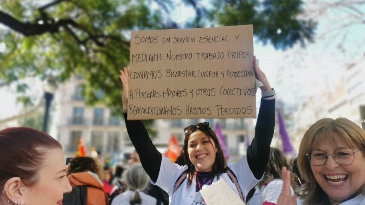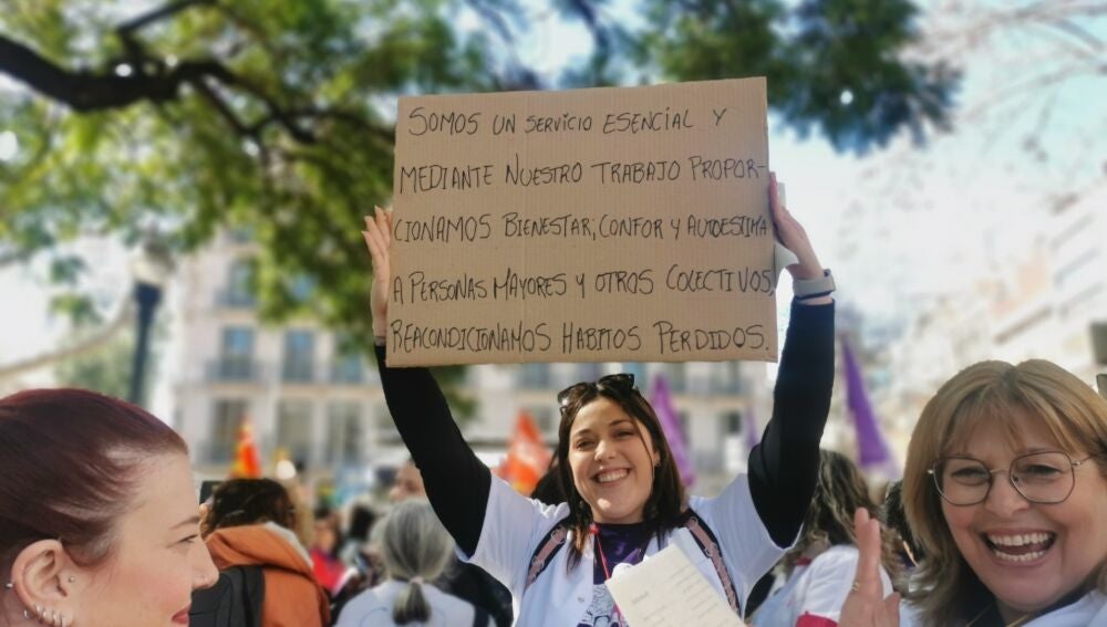 Són dones com la María Sierra, que afirma que la seva és "la feina més bonica del món". O la Mariceli, que recorda que durant la pandèmia van ser "un servei essencial" i ara sent que són "l'últim mico" a l'hora de signar un conveni "una mica digne". "Fa sis convenis que soc aquí i potser és la vegada que m'he vist més impotent, més maltractada i més invisibilitzada", remata la Rosa, una altra treballadora del SAD.