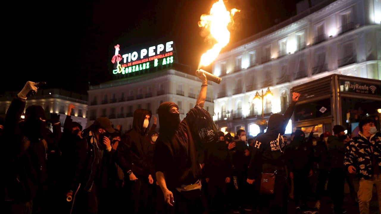 Los disturbios de Madrid fueron protagonizados por manifestantes que protestaban en la Puerta del Sol por el encarcelamiento del rapero Pablo Hasél se saldaron además con 55 personas heridas, de las que 35 son policías.