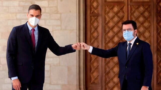 Después de la reunión de dos horas con el presidente del Gobierno, Pedro Sánchez, su homólogo en la Generalitat, Pere Aragonès, ha pedido "tiempo y perseverancia", sin marcarse "plazos" concretos, para ir obteniendo "resultados" en la mesa de diálogo, en la que ha defendido una amnistía y un referéndum de autodeterminación.