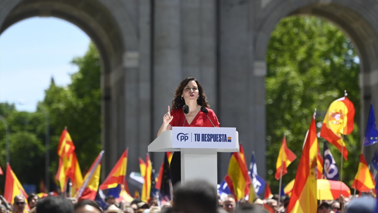 Ayuso ha sido una de las intervinientes en el multitudinario acto organizado por el PP en la madrileña Puerta de Alcalá, convocado en respuesta a los cinco días de reflexión que se tomó Sánchez para decidir si seguía al frente del Ejecutivo, y al que han asistido el líder del PP, Alberto Núñez Feijóo, los expresidentes de Gobierno José María Aznar y Mariano Rajoy y los presidentes autonómicos.