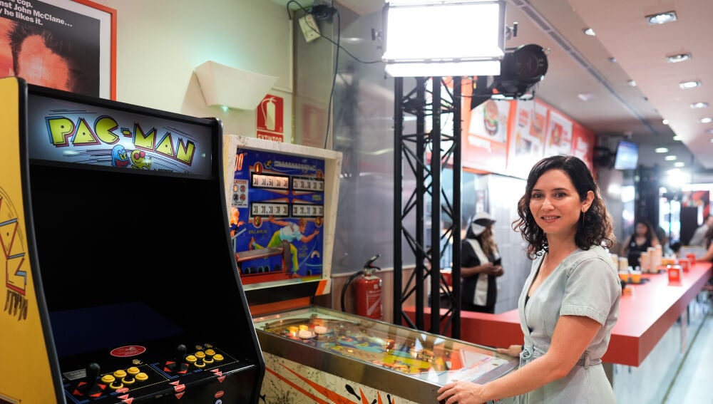 La presidenta regional no cree factible ahora que el PP presente una moción de censura contra Pedro Sánchez. Afirma Díaz Ayuso que sólo serviría para blanquear al presiente del Gobierno del que ha denunciado sus "amenazas populistas". Declaraciones a los periodistas en la Plaza de los Cubos donde ha visitado el primer restaurante de Burger King abierto en España y que ahora cumple 50 años.