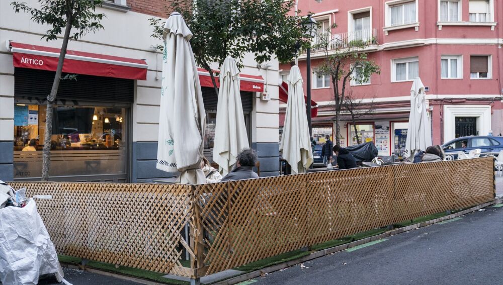 Las terrazas montadas en plazas de aparcamiento surgieron a raíz de la pandemia del coronavirus para hacer posible la actividad hostelera, y aunque ya no se ven en zonas saturadas, persisten en otros puntos de la capital, puesto que al modificar la ordenanza de Terrazas en 2022 se permitió que este tipo de terrazas siguieran en pie hasta el 31 de diciembre de 2023.