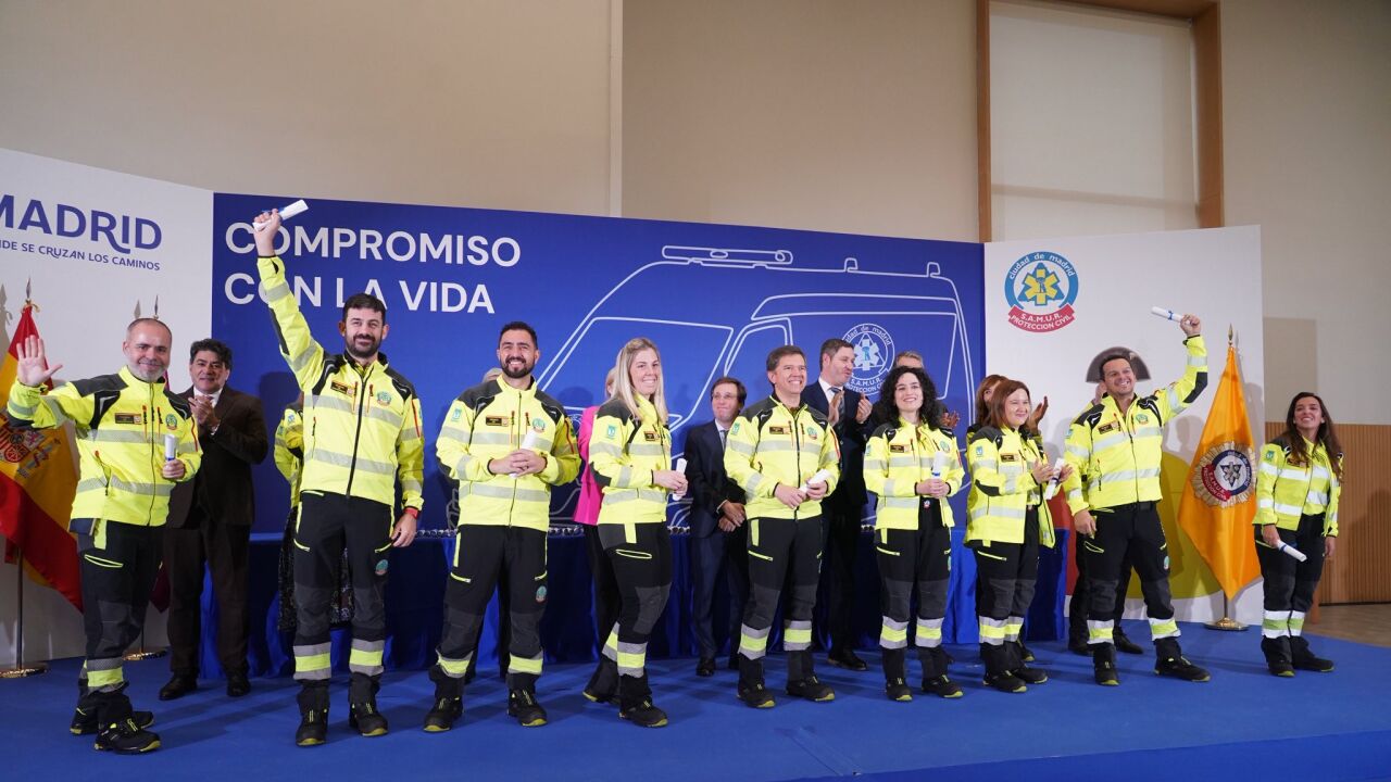 Hasta 101 técnicos de emergencias (TATS), "ángeles de la guardia que visten de amarillo", ha destacado el alcalde Almeida, forman parte ya de la familia del Samur-Protección Civil después de superar la preceptiva oposición.