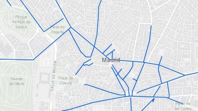 Mapa de calles cortadas por la nieve y calles limpias en Madrid hoy martes en tiempo real
