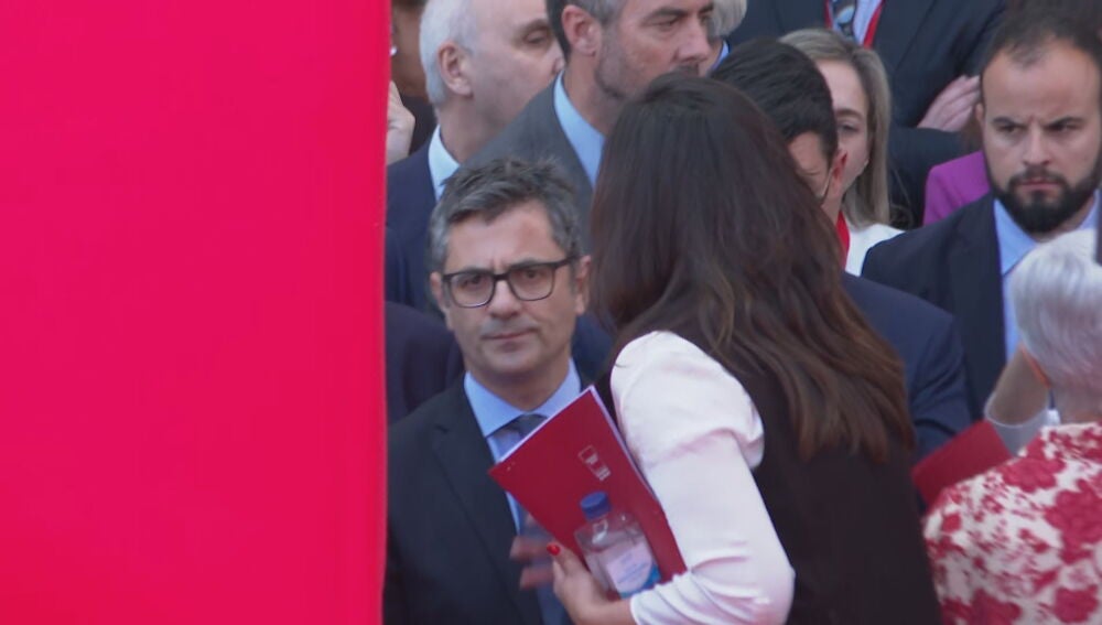 Félix Bolaños acudió al acto de celebración como acompañante de la ministra de Defensa, Margarita Robles, aunque Bolaños no estaba oficialmente invitado, pero protocolo sí le asignó una silla junto a Robles y al delegado de Gobierno en la capital, Francisco Martín.