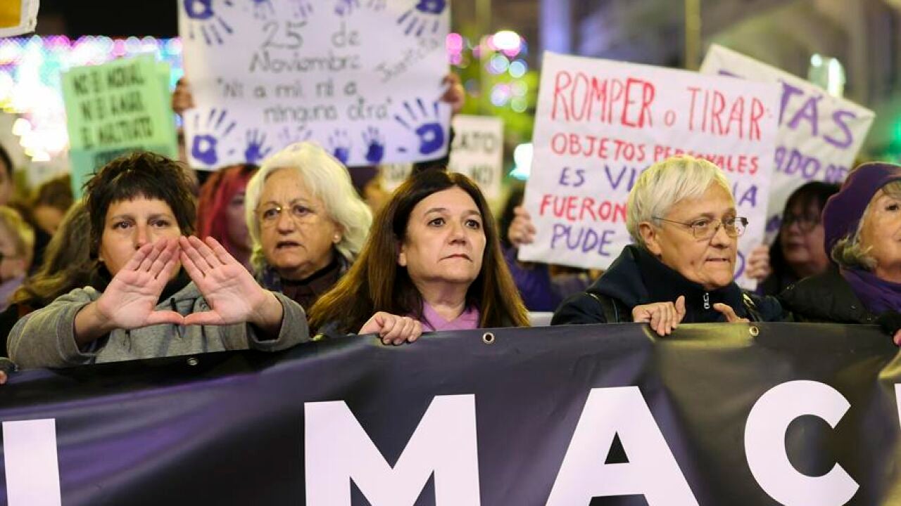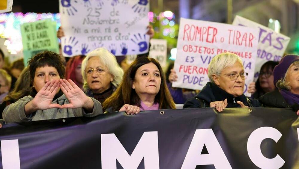 Presididas por una pancarta con el lema 'El machismo mata, viola, explota y borra a las mujeres. Basta Ya!', las manifestantes también portan pancartas con otros temas como 'No quiero sentirme valiente al salir a la calle, quiero sentirme libre' o 'Con nuestras hermanas iraníes'. Además, de corear el cese de la ministra, que ha sido contestado con abucheos por personas que se encontraban observando la marcha, también ha podido verse durante el recorrido una gran pancarta con el mismo lema.