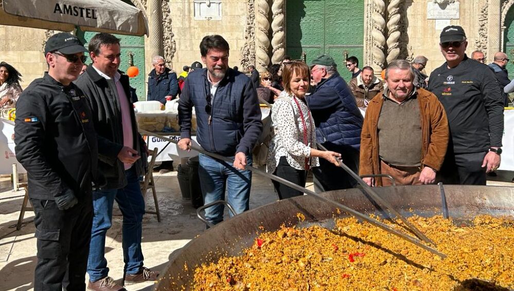 Para el cocinado del arroz Casa Riquelme ha utilizado 150 kilos de arroz, 250 kilos de pollo y magro y 50 kilos de verduras entre guisantes, alcachofas, habas y ajos tiernos. A las 20 horas, se celebra la gala de entrega de los Soles Guía Repsol en el auditorio provincial ADDA.