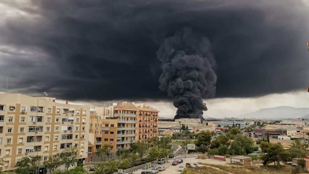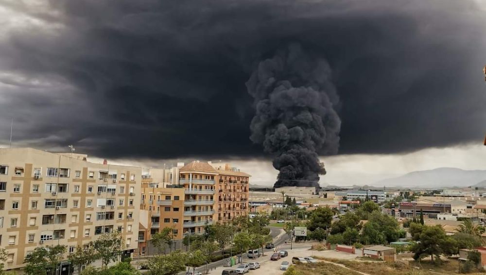 La columna de humo procedente del incendio de la fábrica de cauchos, seguirá siendo visible en las próximas horas | Onda Cero Alicante