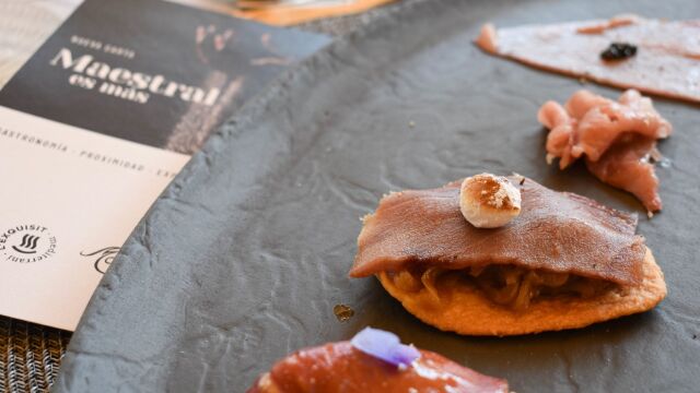 La nueva carta de Maestral, del equipo que lidera el chef Abel Martellotti, incorpora otras novedades como las “Pencas de acelgas rellenas” de queso de vaca cremoso, trufa y velo ibérico, el “Sapito” rape en All i pebre con canaillas, “el mítico” hojaldre de pera de Maestral o una selección con las mejores salazones de nuestras costas.
