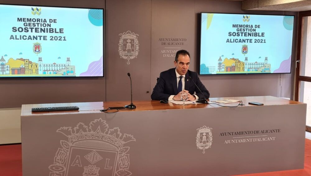 El concejal de Presidencia, Nueva Tecnologías y Coordinación de Proyectos, Antonio Peral, ha presentado este miércoles la Memoria de Sostenibilidad de Alicante 2021, que arroja resultados destacados “como la mejora de la eficiencia energética en un 9% o el aumento del gasto social en un 4,5%”. El documento, de cien páginas, se titula “La Ciudad abierta, inteligente, verde, innovadora e inclusiva”, y realiza un balance de la sostenibilidad en sus tres ejes: los asuntos económicos, sociales y medioambientales.