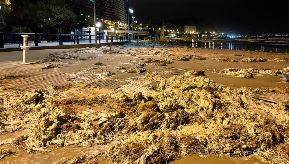 UTE Alicante, empresa concesionaria de los servicios de limpieza viaria y tratamiento de residuos de la ciudad, ha dispuesto un operativo especial de limpieza de playas y paseos marítimos tras el temporal.