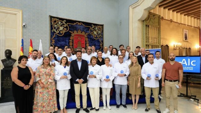 Sánchez ha explicado junto al alcalde, Luis Barcala, y la concejal de Comercio y Hostelería, Lidia López, esta nueva iniciativa de promoción turística en un acto celebrado en el Salón Azul del Ayuntamiento en el que han participado chefs y gerentes de los 35 establecimientos adheridos a Alicante Ciudad del Arroz.
