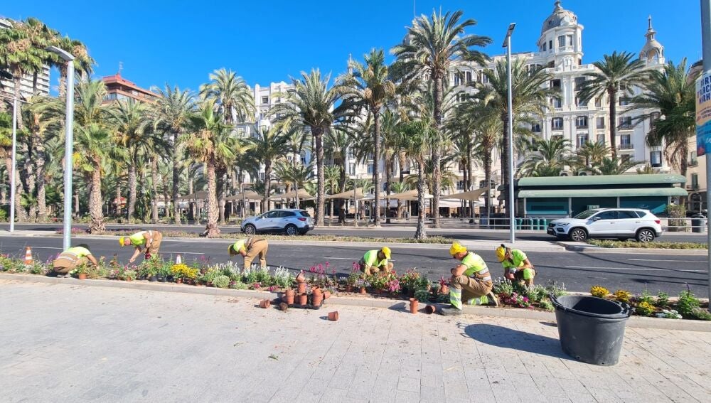Tras los destrozos causados en Hogueras en estas superficies se están colocando más de 2.000 plantas de flores para reponer las afectadas. Durante la primavera se replantaron más de 5.000 plantas y arbustos, pero desde el servicio municipal han tenido que proceder de nuevo para que la ciudad siga presentando una buena imagen.