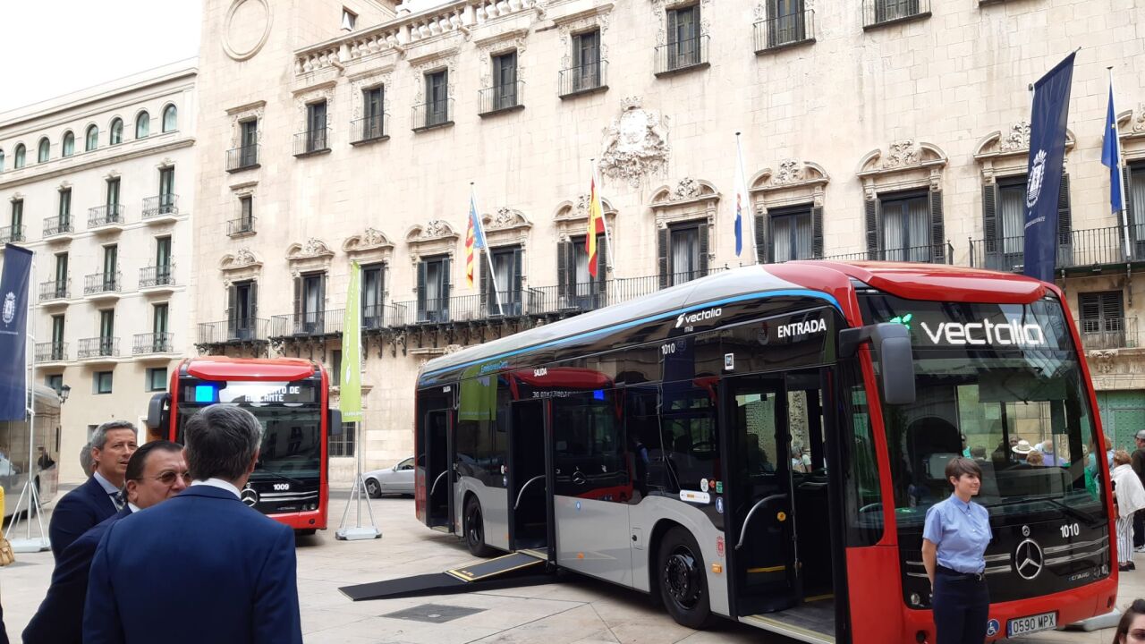 El Ayuntamiento de Alicante y Vectalia han presentado este lunes cuatro nuevos autobuses eléctricos de Mercedes Benz que en los próximos días se incorporaran a la flota municipal y que coloca a la ciudad liderando la electromovilidad en el transporte público de la Comunidad Valenciana.