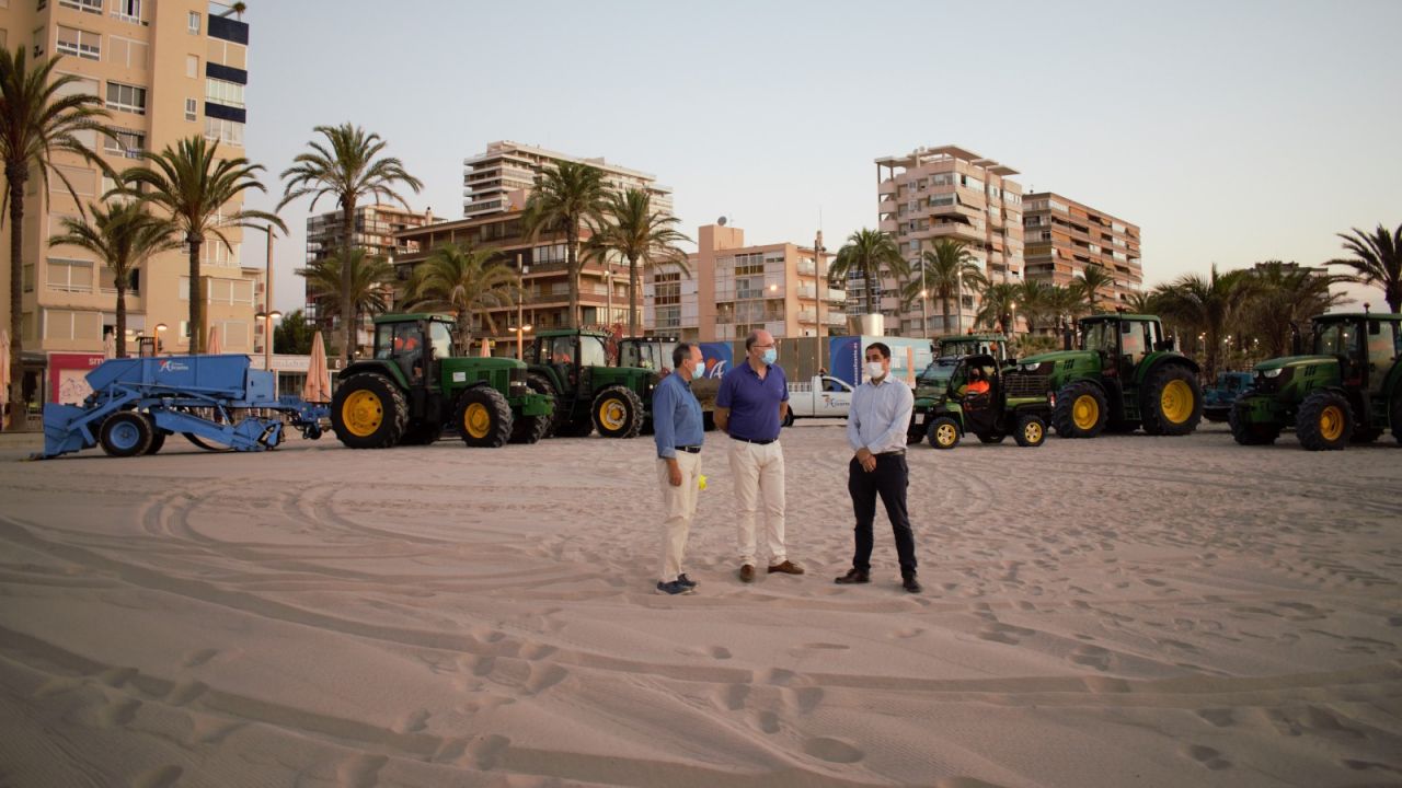 El servicio especial consta de 6 tractores y 14 vehículos auxiliares para el cribado de arena de las playas. Desde las 2 de la noche, los tractores calibran y criban las playas del Postiguet, Albufera, San Juan y Urbanova para que todos los usuarios, alicantinos y visitantes, encuentren sus arenas limpias, impolutas y en perfecto estado.