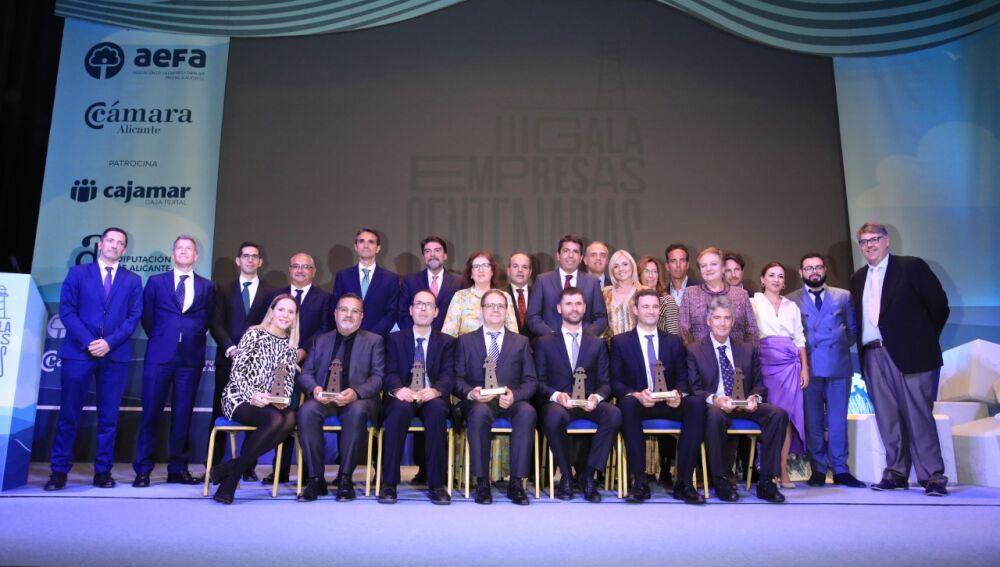 La Cámara de Comercio y la Asociación de Empresa Familiar han reconocido la trayectoria de siete empresas centenarias de la provincia en el transcurso de la III Gala de Empresas Centenarias, que se ha celebrado esta tarde en el Teatro Principal de Alicante