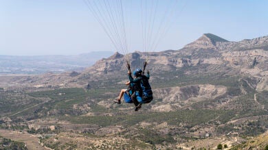 A pesar de que lo de volar se puede hacer en cualquier lugar del mundo en el que las montañas ofrezcan una pendiente suave desde la que despegar y haya un punto despejado en el que aterrizar, la zona de Palomaret, en Agost, a unos 12 kilómetros de la costa, se erige como uno de los mejores sitios para cumplir este eterno deseo humano. Las espectaculares vistas de la provincia de Alicante han hecho que los aficionados al parapente lo hayan elegido, según la web de experiencias aladinia.com, como uno de los rincones idóneos para practicar este deporte.
