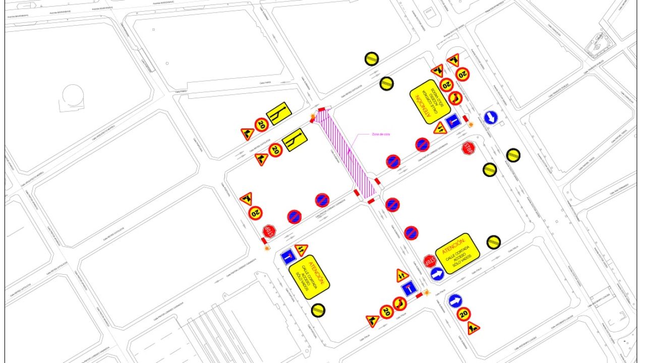 Tráfico informa que para llevar a cabo estas obras que cuenta con un presupuesto total de licitación de 602.585,80 euros y un plazo de ejecución de seis meses y medio. Ha asegurado que se garantizarán itinerarios peatonales "seguros, accesibles y protegidos". Tan solo se cortará el paso peatonal de la calle Alemania con Pintor Lorenzo Casanova, que al existir 4 pasos, seguirían conectados.