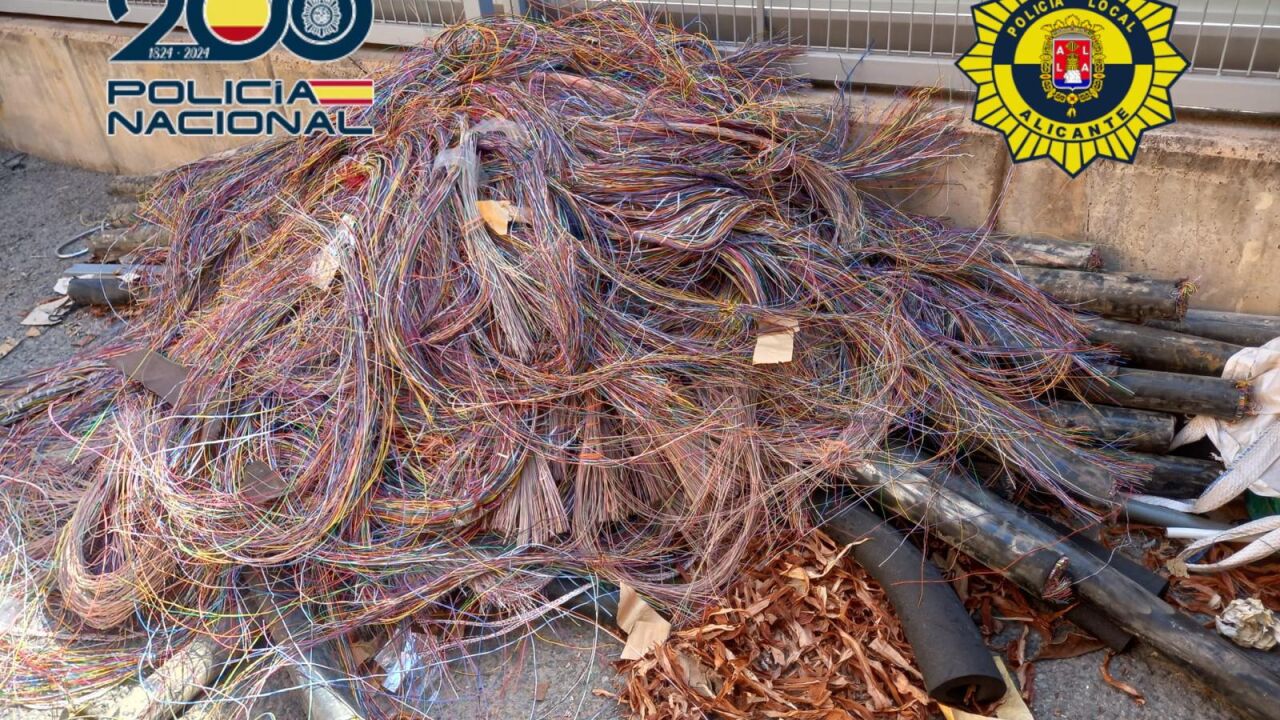 La Policía Local de Alicante ha intervenido decisivamente en la operación llevada a cabo junto al Cuerpo Nacional para esclarecer un hurto de más de 600 kilos de cable de cobre cometido por un trabajador de una empresa de mantenimiento en la ciudad. El material ha sido devuelto a su legítimo propietario, una empresa de telefonía.