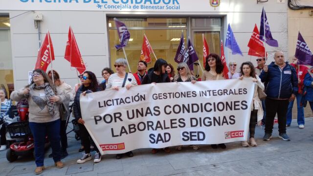 La Federación de Sanidad y Sectores Sociosanitarios de CCOO PV en Alacantí Les Marines ha vuelto a exigir hoy, en una concentración frente a la recién inaugurada Oficina del Cuidador, la reapertura del SED (Servicio de Estancias Diurnas) de la Plaza de América y la publicación de nuevos pliegos para el SAD (Servicio de Ayuda a Domicilio) de Alicante, tras haberse declarado desierto el proceso de licitación hace unos días.