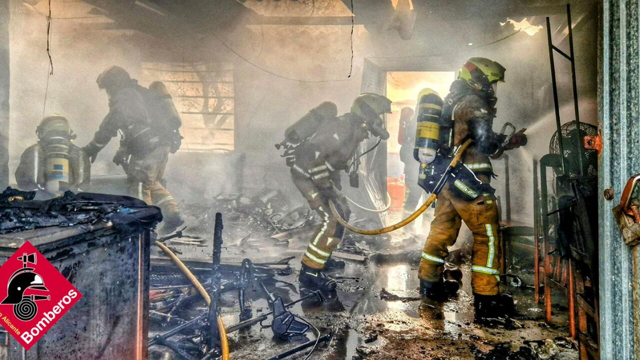 Los bomberos del Consorcio Provincial, con la participación del SPEIS de Alicante han extinguido en la mañana de este miércoles un incendio declarado en un garaje, anexo a una vivienda de la partida alicantina de El Moralet.