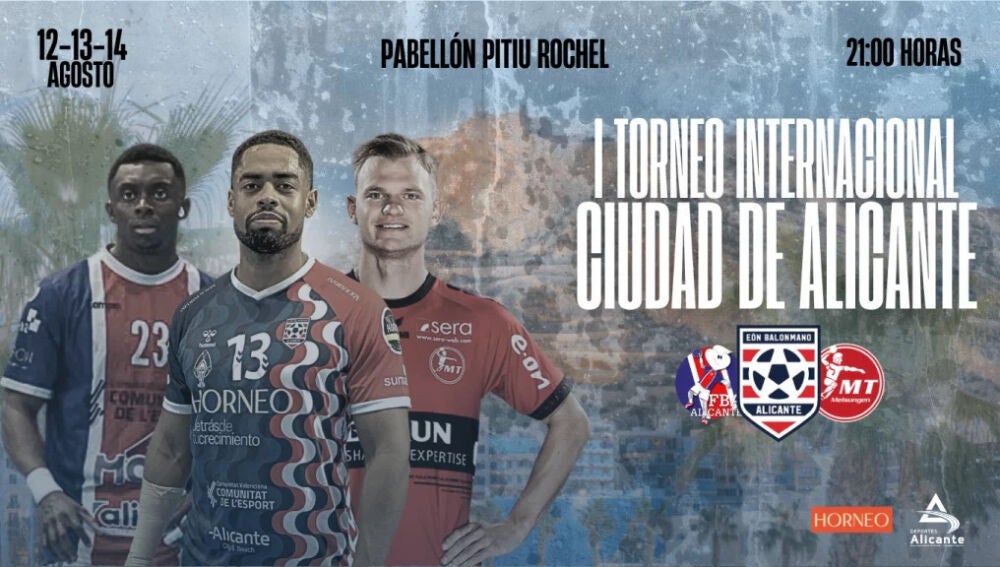 El Horneo EÓN Alicante organiza este triangular que se celebrará los próximos 12,13 y 14 de agosto en el Pitiu Rochel. Los tres encuentros comenzarán a la misma hora: 21:00h y el primero en disputarse será el MT Melsungen – Fundación Agustinos Alicante. El miércoles 13 será el turno del derbi alicantino y el torneo terminará con el enfrentamiento entre el conjunto de Fernando Latorre y el alemán.