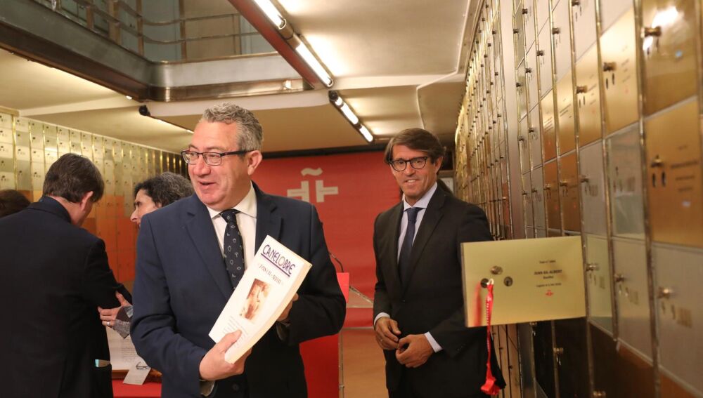 El presidente de la institución provincial, Toni Pérez, y el director del Instituto Cervantes, Luis García Montero, han sido los encargados hoy, coincidiendo con la efeméride del 121 aniversario del nacimiento del docto alicantino, de proceder a consignar una muestra de su patrimonio personal y literario en la caja número 1601.