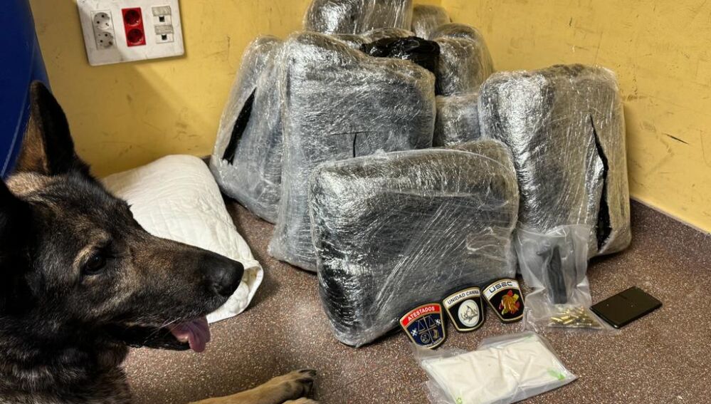 Agentes de la Unidad Canina de la Policía Local de Alicante han detenido en la estación de autobuses a un ciudadano sueco de 20 años por la presunta comisión de un delito contra salud pública y otro de tenencia ilícita de armas. Se le han intervenido 10 fardos con 19,5 kilos de marihuana y otro con medio kilo de una sustancia que pudiera ser cocaína, además de un cargador de un arma semiautomática municionado con 15 proyectiles y 29 balas más. La operación se llevó a cabo el pasado sábado por la tarde con la participación del perro Gus, adiestrado en la detección de estupefacientes.