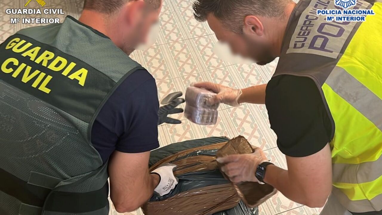 En los registros realizados en cuatro viviendas en El Campello, Valencia y Roquetas de Mar (Almería), los agentes han intervenido casi 90 kilogramos de hachís, diversas sustancias anabolizantes, tres vehículos de alta gama, dos furgonetas que habían sido modificadas para ocultar la droga, dos motocicletas, 9.145 euros en efectivo, diversos terminales de telefonía móvil, varias máquinas para envasar al vacío y útiles para el cultivo de marihuana.