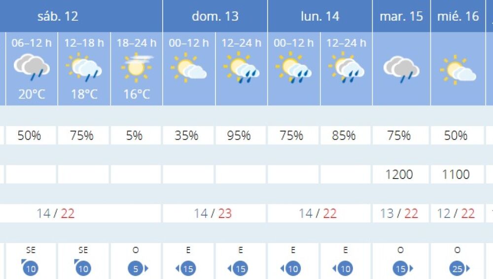 En cuanto a las temperaturas, durante el resto de la Semana Santa van a ser muy agradables, sobre todo a medio día con más de 22 a 24 grados y mínimas entre 13 y 15 grados en la franja costera.