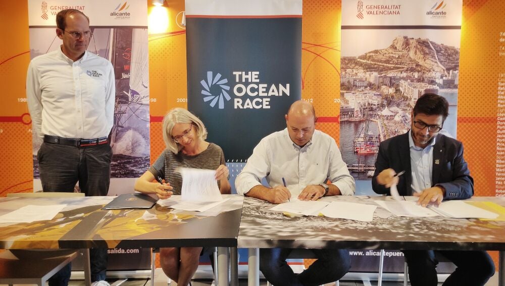 En la firma del acuerdo han participado el presidente de The Ocean Race, Richard Brisius; la vicerrectora de Igualdad, Inclusión y Responsabilidad Social de la Universidad de Alicante (UA), Eva Espinar Ruiz, el vicerrector de Inclusión Sostenibilidad y Deportes de la Universidad Miguel Hernández de Elche (UMH), Raúl Reina Vaíllo, y el adjunto a Dirección de SPTCV, Rufino Selva.