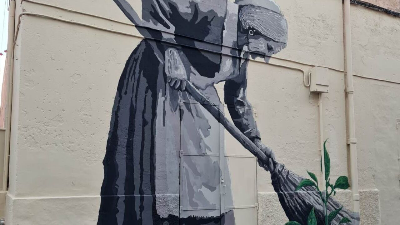 En él se ve a una mujer de edad avanzada con una escoba de paja, en distintas escalas de grises, que mira una planta de color verde que crece a sus pies. Se trata de un homenaje a las personas que han luchado a lo largo de su vida por la mejora de este céntrico barrio alicantino.