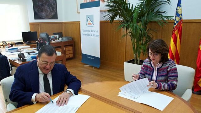 La rectora de la Universidad de Alicante y presidenta de la Fundación General de la UA, Amparo Navarro, y el presidente de Vectalia, Antonio Arias, han firmado un convenio que renueva el compromiso de mecenazgo de esta empresa con los grupos de cámara de la Universidad de Alicante; el cuarteto de cuerda Vibrato String Quartet UA y el quinteto de metales Maestoso Brass Ensemble, formados ambos por músicos de la Orquesta Filarmónica de la Universidad de Alicante (OFUA).